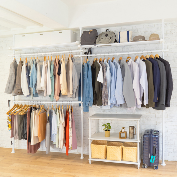 ワンタッチで簡単に突っ張らせて設置できる「突っ張りポールハンガー」